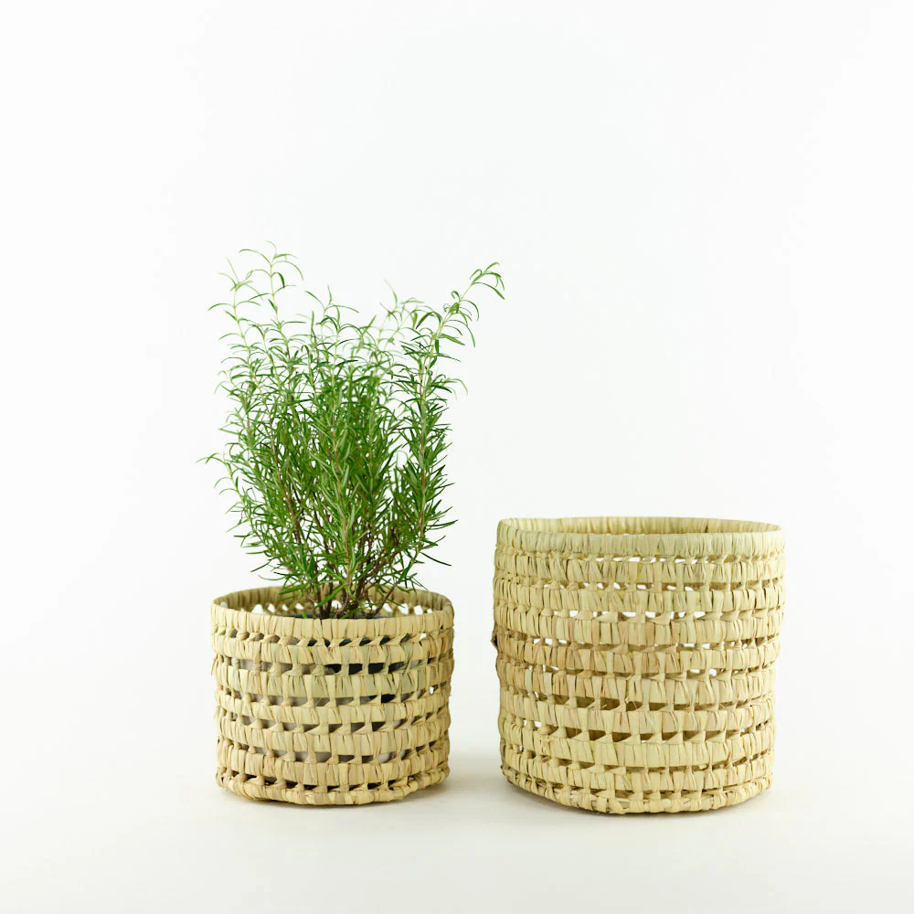 The Cup XS Basket is a charming and practical storage piece, handwoven from sustainable palm leaves by skilled Moroccan artisans. Its compact size makes it ideal for holding small household items, toiletries, or decorative plants, adding an authentic and natural touch to your home.