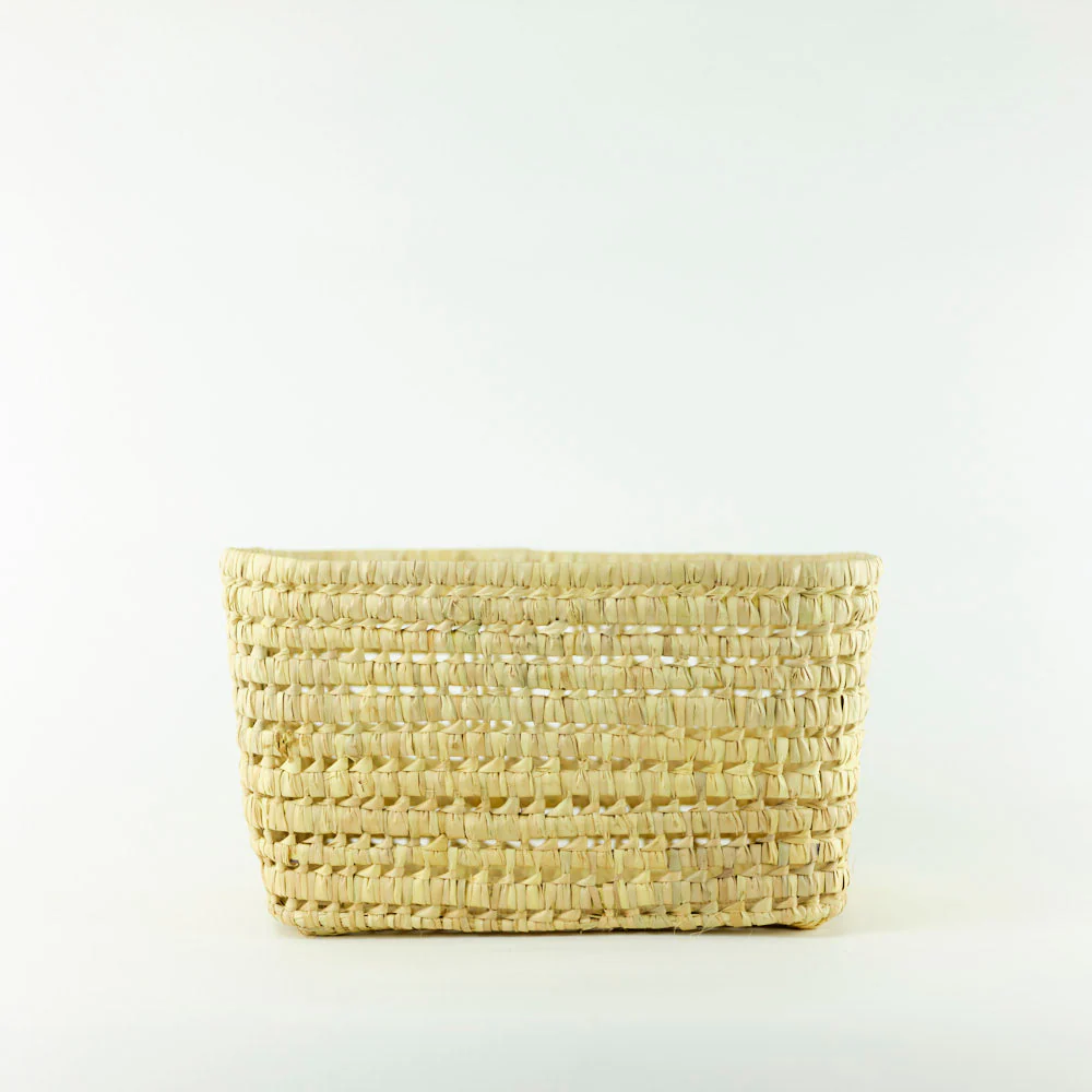 Handwoven in Morocco from eco-friendly palm leaves, each basket carries its own unique character and texture, infusing your space with a warm, Mediterranean atmosphere.