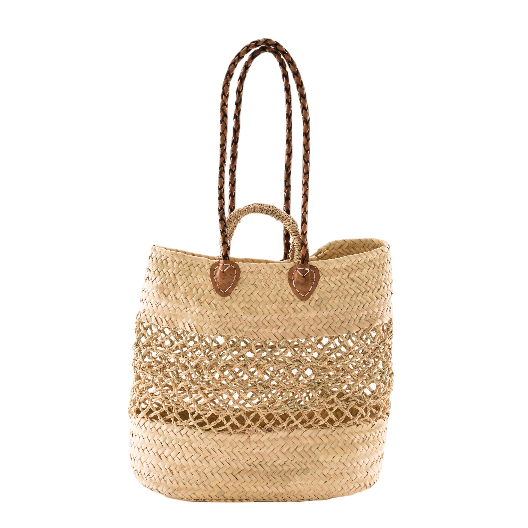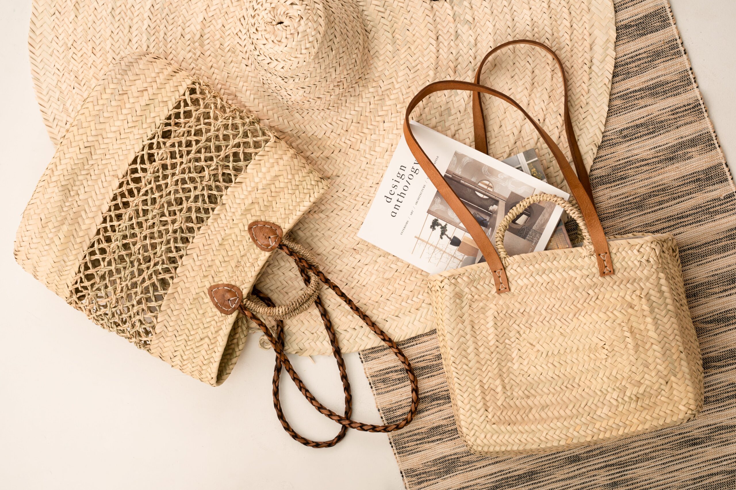👜 Nette Tote Basket Bag – Handmade Moroccan Palm Tote with Leather Straps