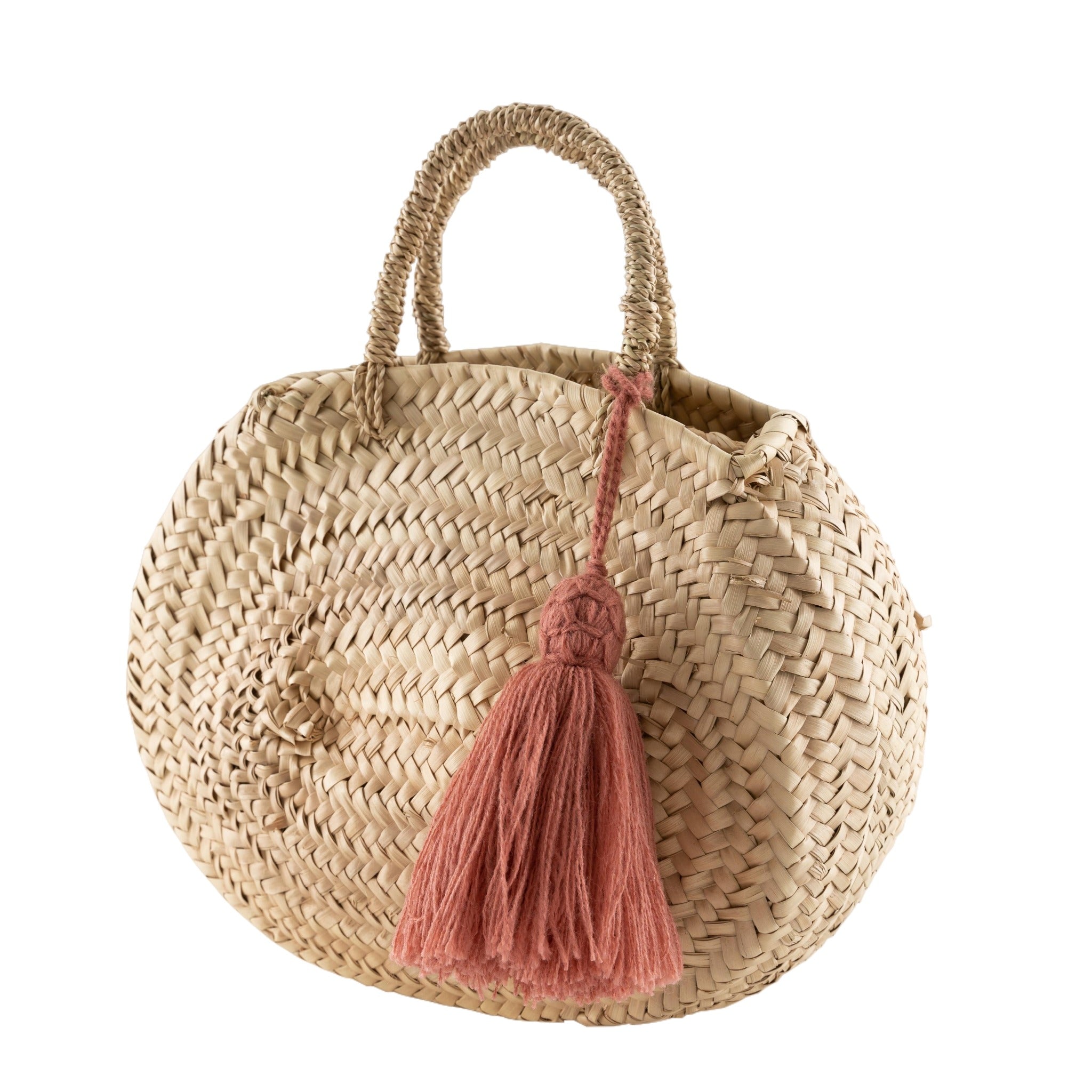 👜 Tabi Tassel Oval Basket Bag – Dusty Pink | Handmade Moroccan Palm Bag with Wool Tassel