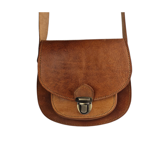 Handmade Moroccan Round Leather Crossbody Bag | Geometric Sling Bag with Adjustable Strap | Everyday Travel Purse