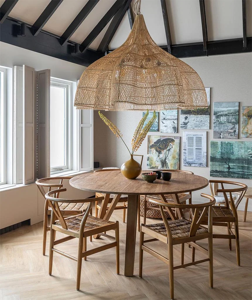 The organic texture of rattan enhances the lampshade’s natural beauty, while the meticulous weaving ensures long-lasting durability and timeless sophistication. Whether placed in a living room, entryway, dining area, or boutique space, this extraordinary pendant is designed to elevate interiors with luxury and artistry.