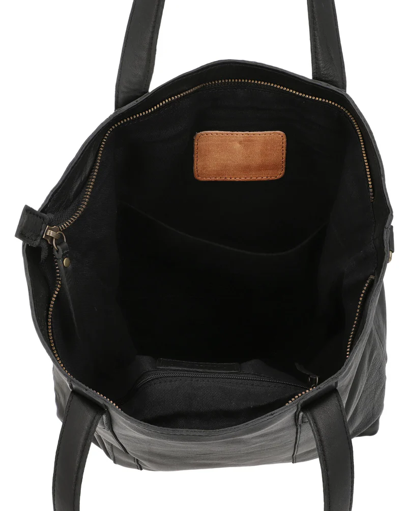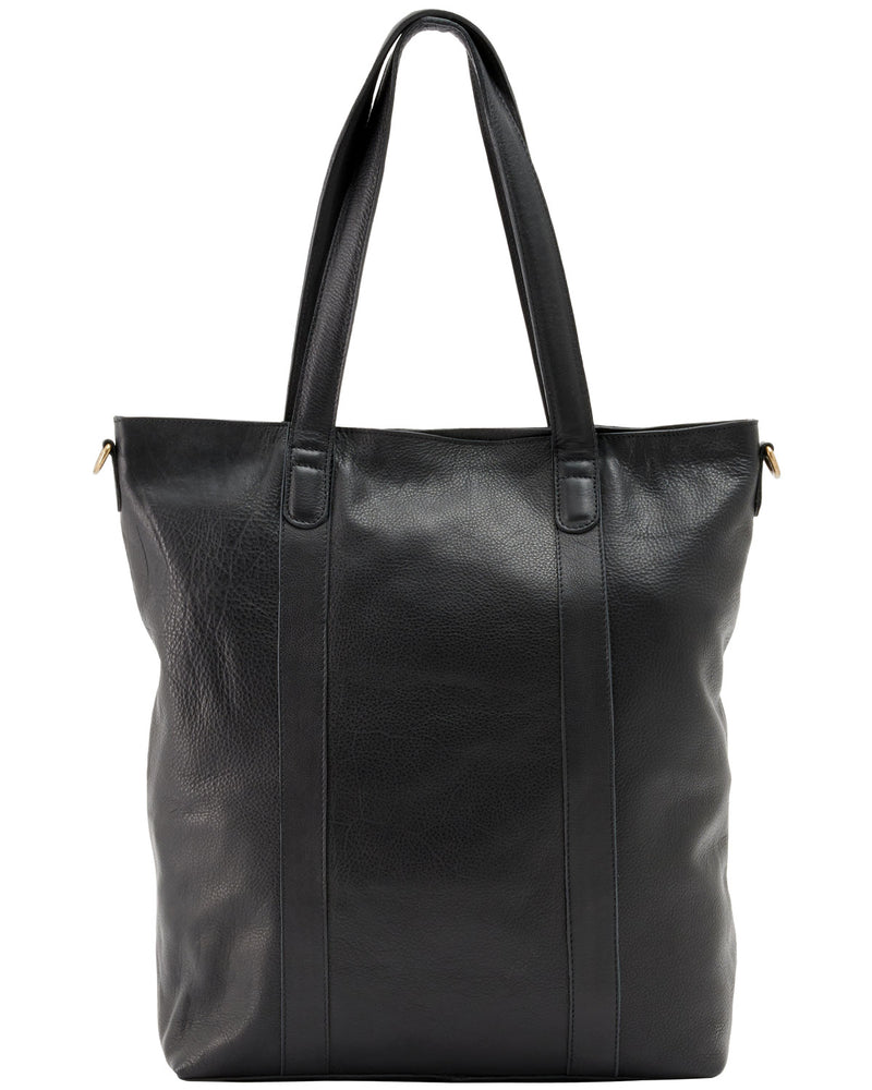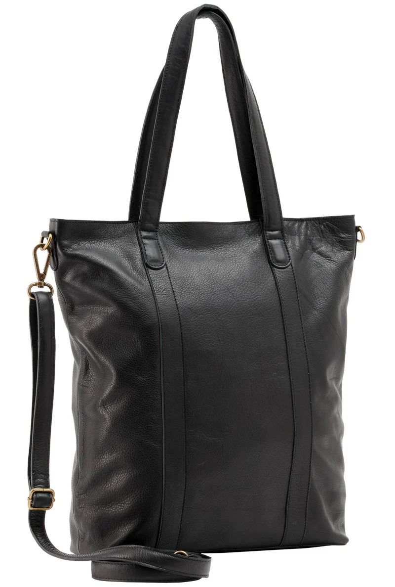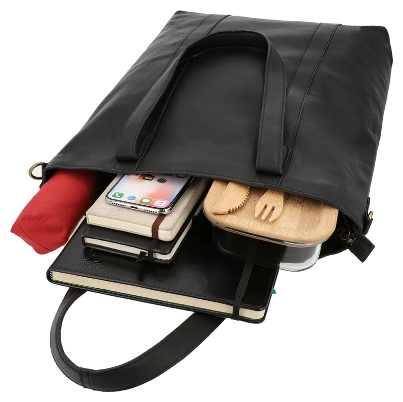 Tote Bag Handbag Shoulder Bag – Black Leather, 15″ Device Compatible, Zipper Closure